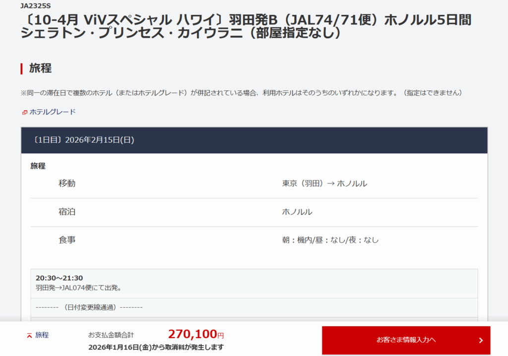 ViVツアーの公式サイトはこちらhttps://www.jal.co.jp/jp/ja/intltour/hwi/package-tour/viv-special/